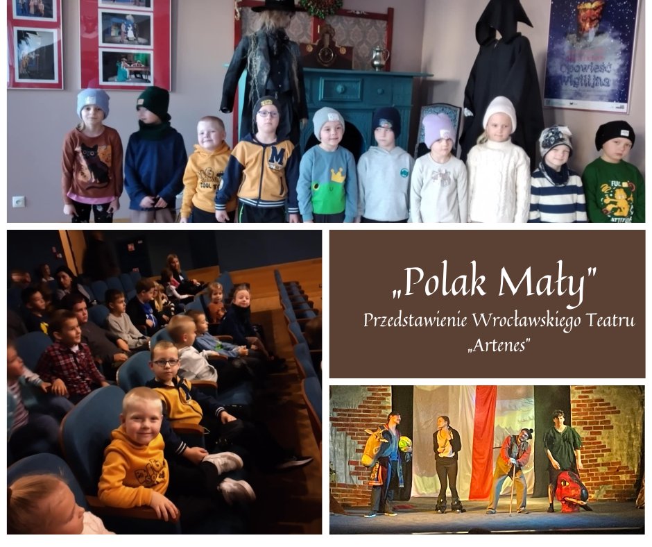 Dziś uczniowie klas 0-III wybrali się na przedstawienie teatralne pt. „Polak Mały”. Sztukę przygotował Wrocławski Teatr „ARTENES” w oparciu o wiersz „Kto ty jesteś? - Polak mały” Władysława Bełzy.