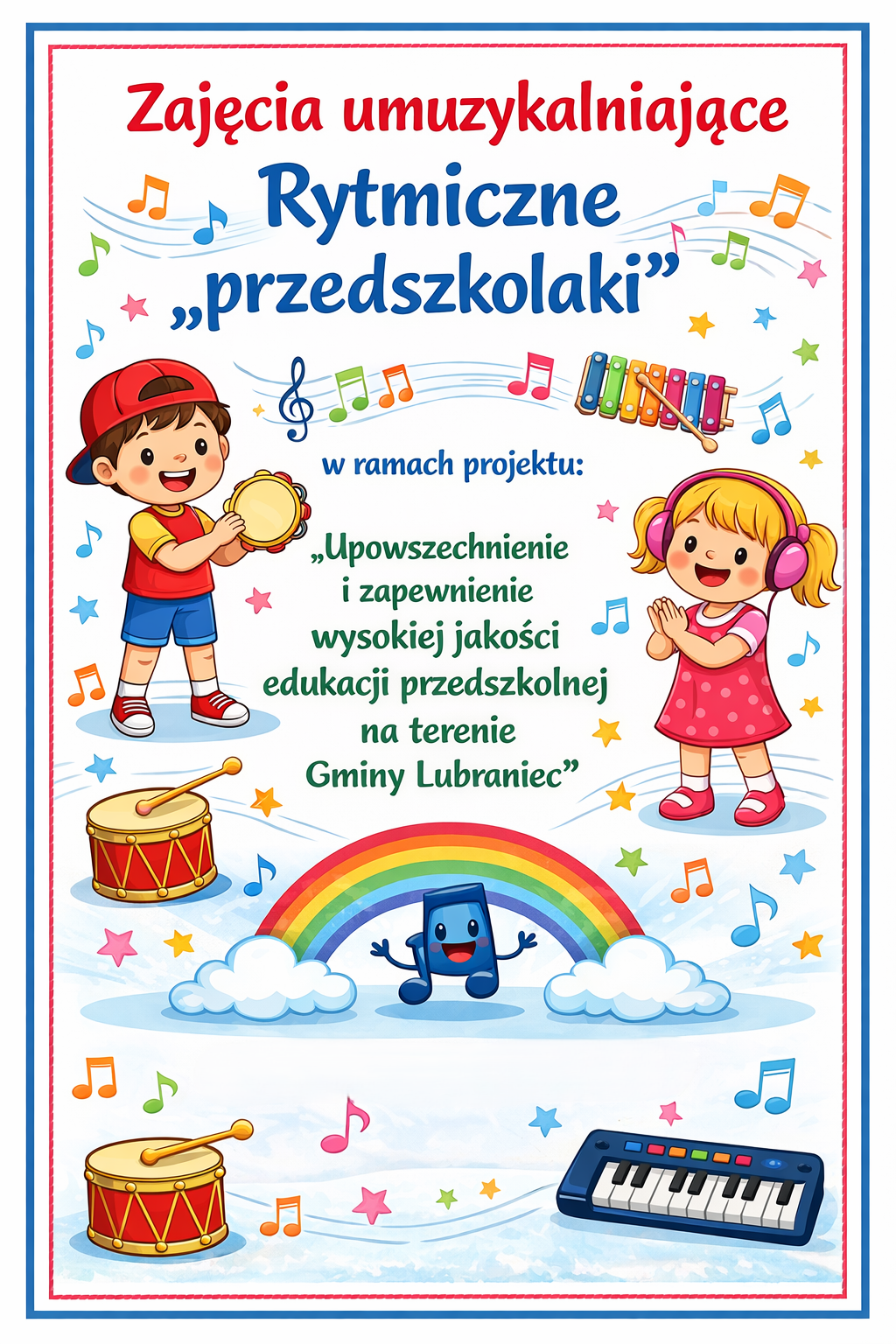 W ramach projektu „Upowszechnienie i zapewnienie wysokiej jakości edukacji przedszkolnej na terenie Gminy Lubraniec” odbyły się zajęcia umuzykalniające „Rytmiczne przedszkolaki”.