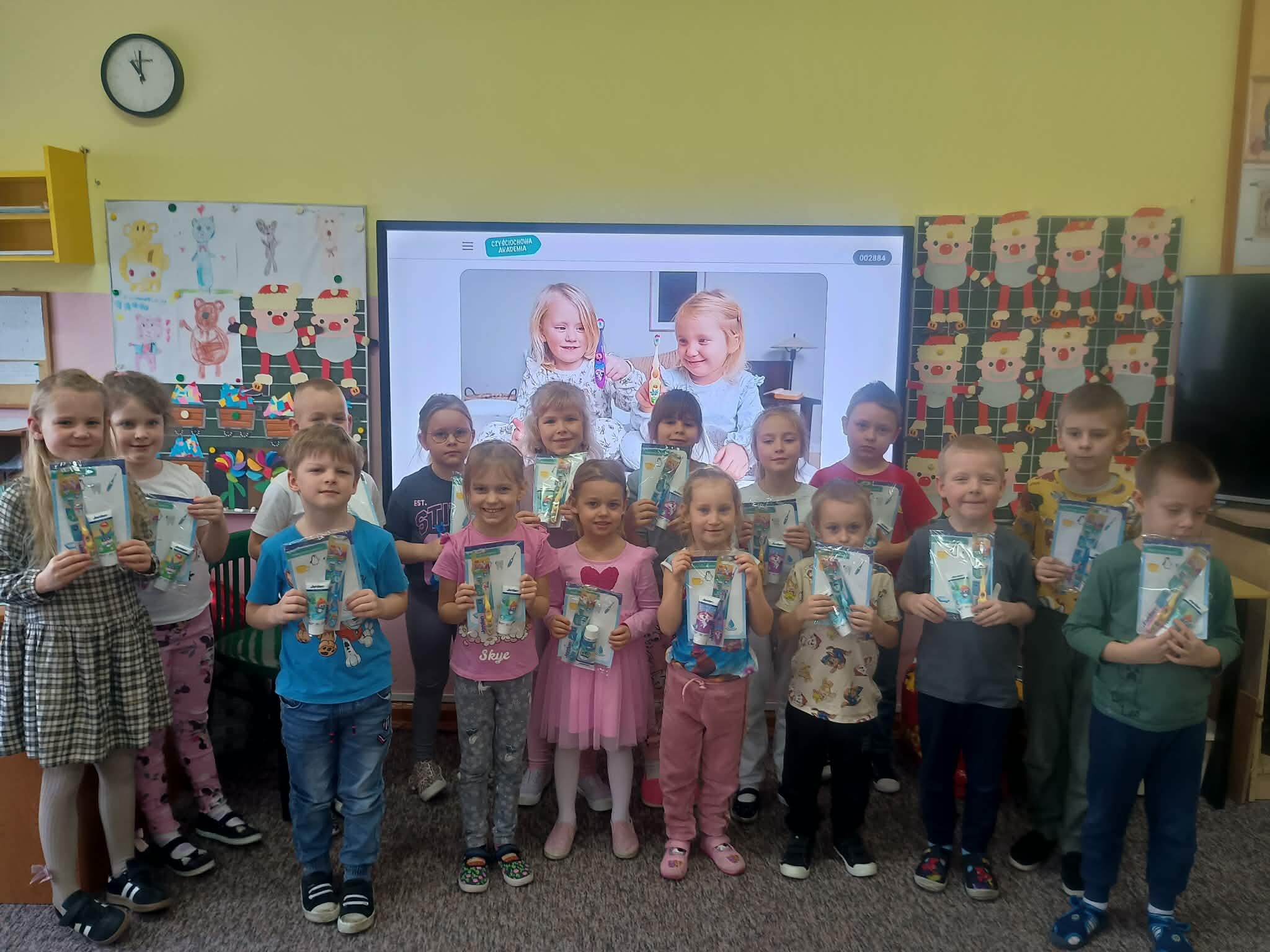 W naszych oddziałach przedszkolnych realizujemy program Akademia Czysciochowa. Dzieci wzięły udział w konkursie "Jak dbam o ząbki", który był jednym z elementów dodatkowych w realizacji programu, w związku z czym przyznane im zostały nagrody. Każde dziecko odebrało zestaw do higieny jamy ustnej - pastę i szczoteczkę do zębów marki Jordan. Gratulujemy dzieciom kreatywnych prac, zaangażowania oraz zdobytych nagród.