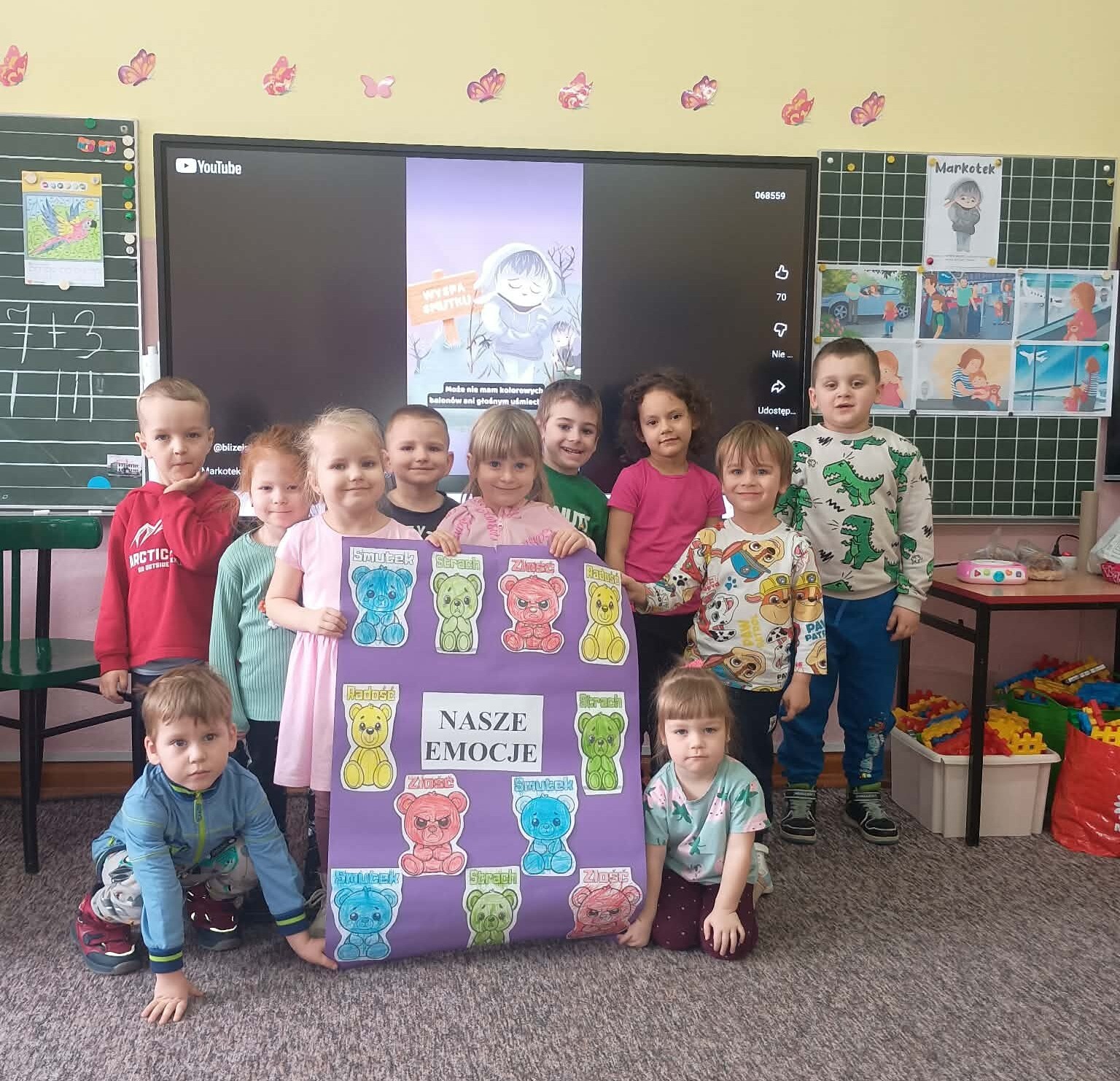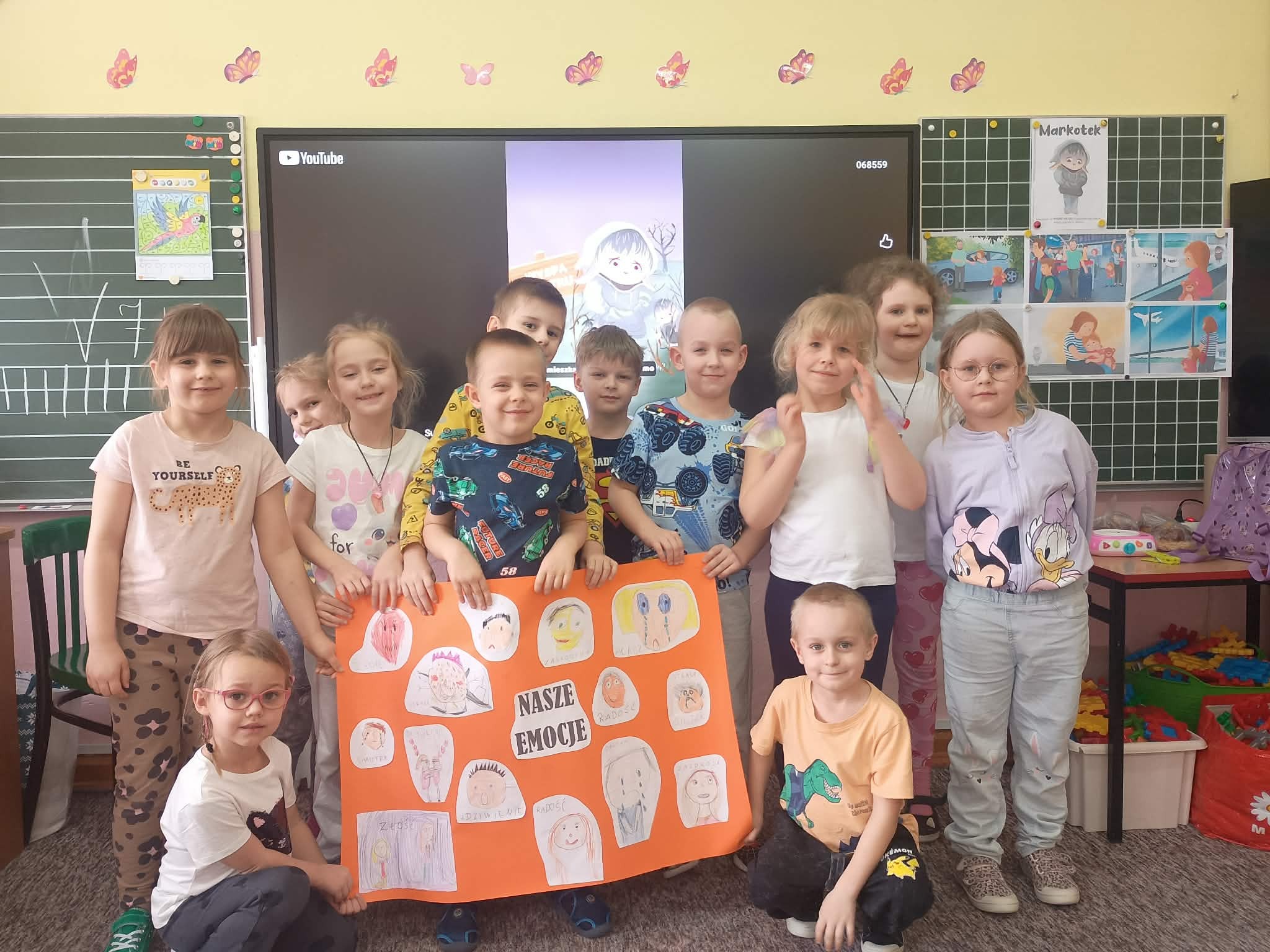 Przedszkolaki z obu grup rozmawiały dziś o depresji, poznały znaczenie smutku, określały w jakich sytuacjach jest im smutno oraz jak sobie radzą z tym uczuciem. Dzieci stworzyły plakaty pt. "Nasze emocje", wysłuchały bajki pt. " Markotek z Wyspy Smutku", rozmawiały o jej treści. Na koniec bawiły się zabawę integracyjną pt. "Gdy dopada smutek..." Zajęcia odbyły się w ramach Ogólnopolskiego Dnia Walki z Depresją